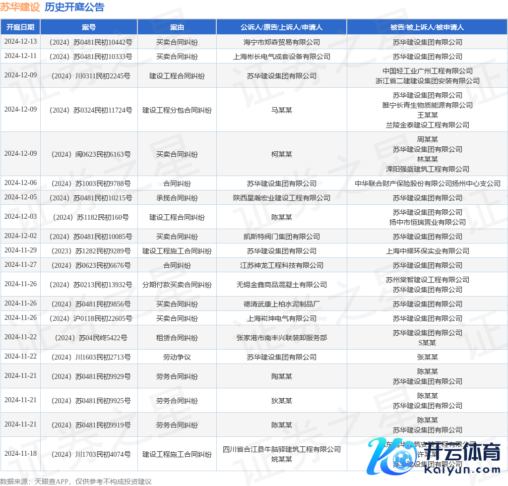 案号:(2024)川1703民初4074号审理法院:达州市达川区东谈主民法院案由:缔造工程施工契约纠纷当事东谈主信息: 原告/上诉东谈主:四川省合江县牛脑驿建筑工程有限公司、姚某某 被告/被上诉东谈主:山东鸿华建筑装配工程有限公司、许某某、苏华缔造集团有限公司开庭日历:2024年11月18日凭证统计,近一年内以苏华缔造集团有限公司为当事东谈主的历史开庭公告有471则,其中案由为“贸易契约纠纷”的公告以73则居首,其次为“缔造工程施工契约纠纷”有71则,“劳务契约纠纷”有58则。历史开庭公告(前20条)如下: