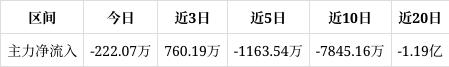 当天主力净流入-222.07万,占比0.02%,行业排行36/95,该股面前无连气儿增减仓气候,主力趋势不澄莹;所属行业主力净流入-48.95亿,面前无连气儿增减仓气候,主力趋势不澄莹。