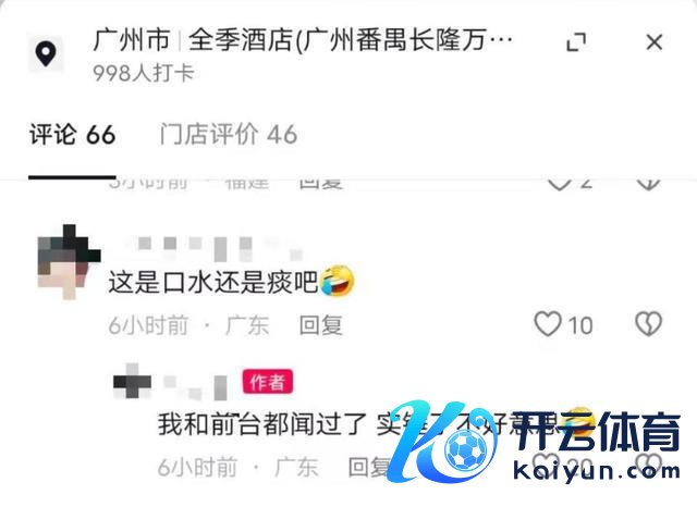 12月4日,一位网友上传了一段视频,曝光其在广州全季栈房(位于番禺长隆万博中心店)入住技巧,发现漱口杯底部角落存有不解液体的情况。视频中显著展示了杯沿处的极少液体,对此,辩驳区有不雅众估计那可能是涎水或是痰。针对这些估计,该网友恢复谈:“我和前台皆闻过了,实锤了不好情理。”