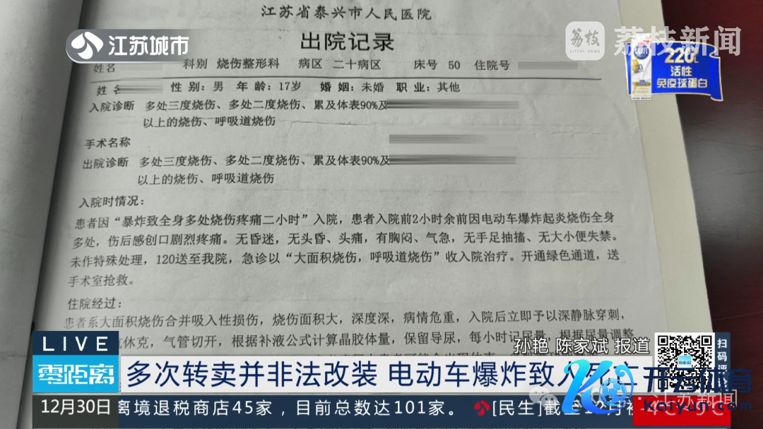据报谈,此前在江苏泰州泰兴,一辆电动车倏得发生爆炸,年仅18岁的车主小磊在爆炸中失去了人命。
