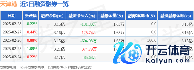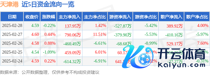 本站音问,功令2025年2月28日收盘,天津港(600717)报收于4.59元,下落0.22%,换手率0.73%,成交量21.14万手,成交额9747.63万元。