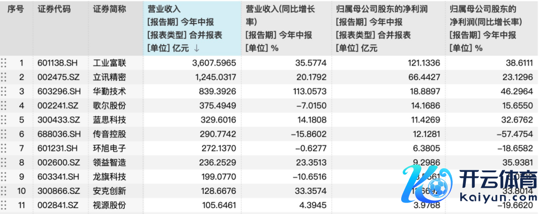 除工业富联外,Wind数据自满,2025年上半年消耗电子板块共有11家企业营收窒碍百亿元。立讯精密、华勤工夫、歌尔股份、蓝想科技等头部公司默契杰出,营收折柳达到1245.03亿元、839.39亿元、375.49亿元、329.60亿元。
